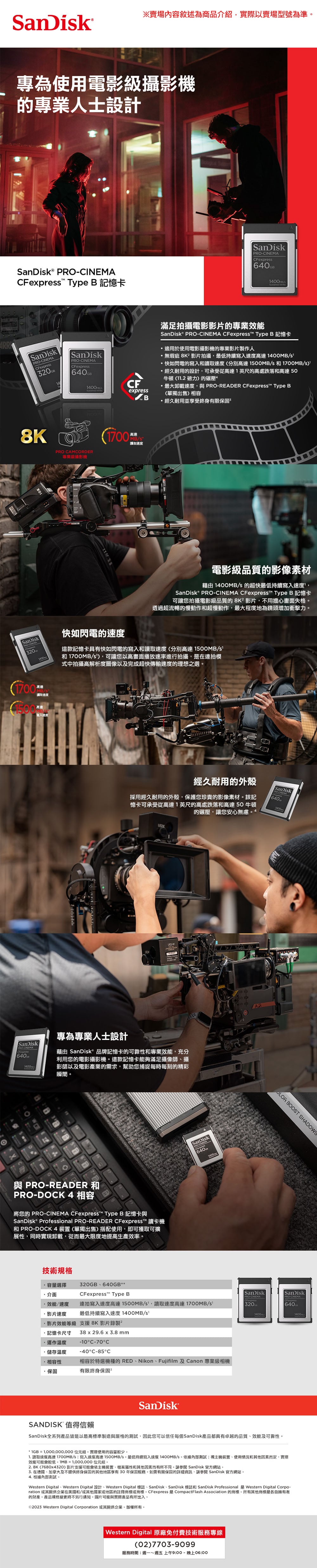 SanDisk 640G PRO-CINEMA CFexpress Type B 記憶卡