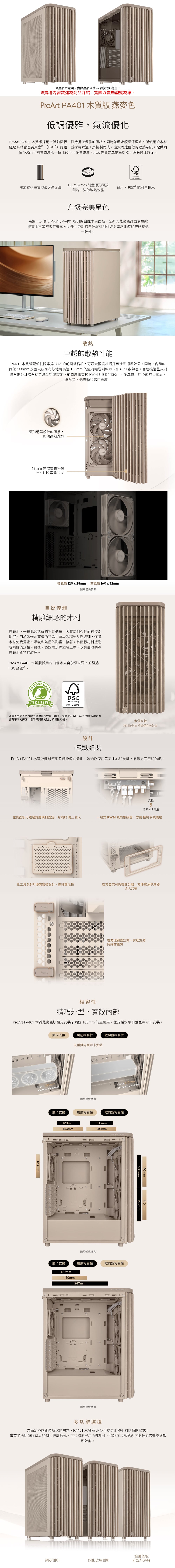 ASUS 華碩【ProArt PA401 WOOD 木質網狀版】ATX機殼《燕麥色》(顯卡31.5/CPU高16)