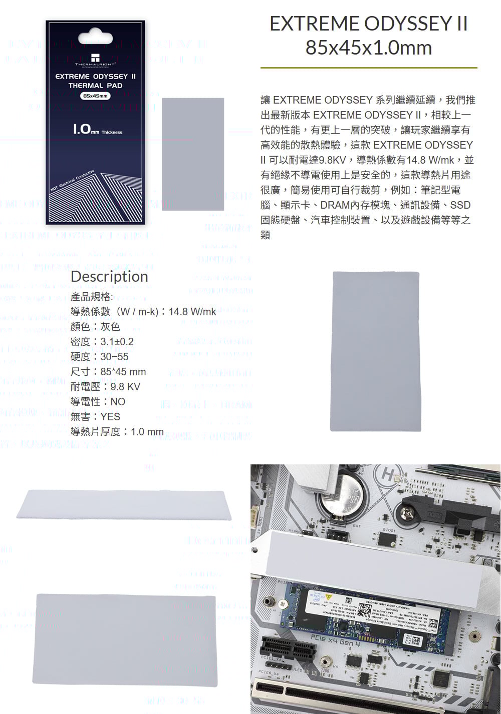 Thermalright 利民 EXTREME ODYSSEY II 85*45*1.5 mm 導熱片(導熱係數14.8 W/mk)