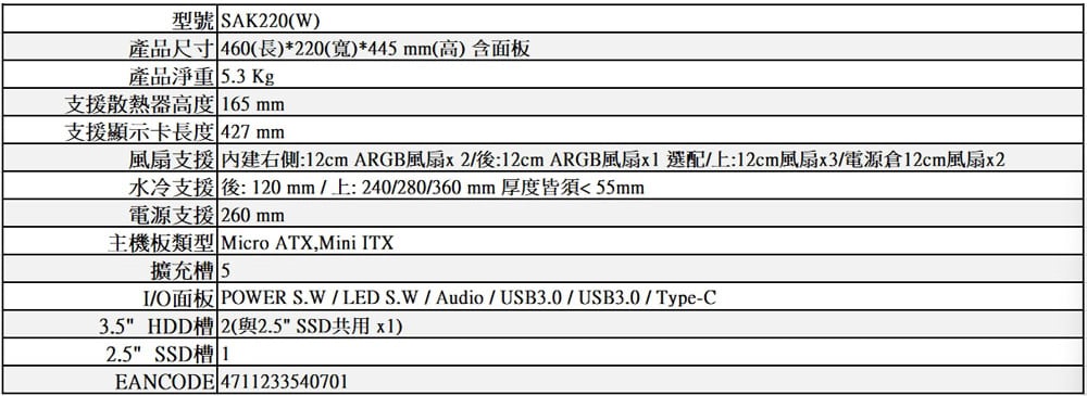 視博通【SAK220(W)】全景玻璃透側 M-ATX機殼《白》(顯卡42.7/CPU高16.5)