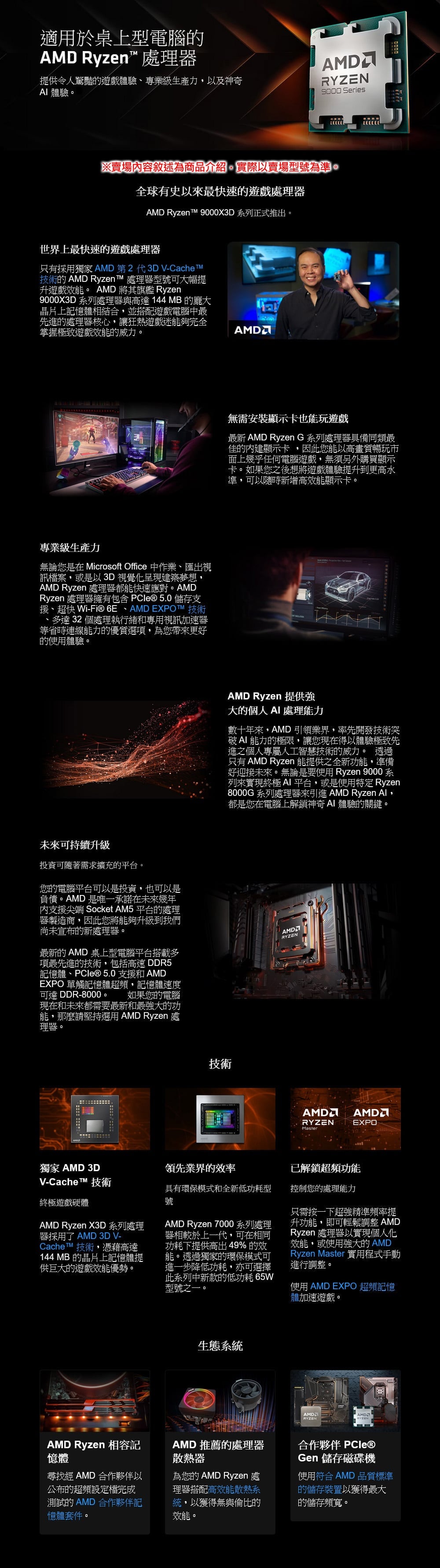 AMD Ryzen 7 9800X3D 8核/16緒 處理器《4.7GHz/104M/120W/AM5》