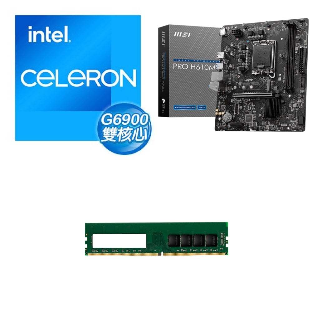 ☆期間限定★ G6900+微星 PRO H610M-S D4 M-ATX主機板+威剛 DDR4-3200 8G 記憶體