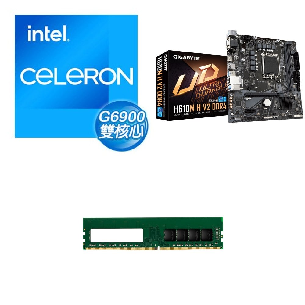 ☆期間限定★ G6900+技嘉 H610M H V2 D4 M-ATX主機板+威剛 DDR4-3200 8G 記憶體