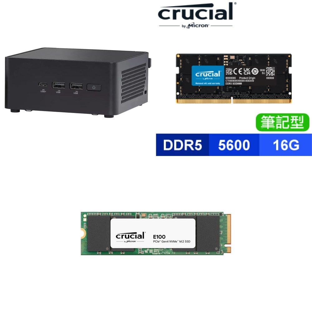 ☆期間限定★ 華碩 NUC 14 PRO U5 125H NUC Kit 準系統+美光 Crucial NB DDR5 5600 16G BULK 記憶體+美光 Crucial E100 1TB M.2 PCIe SSD(散裝)