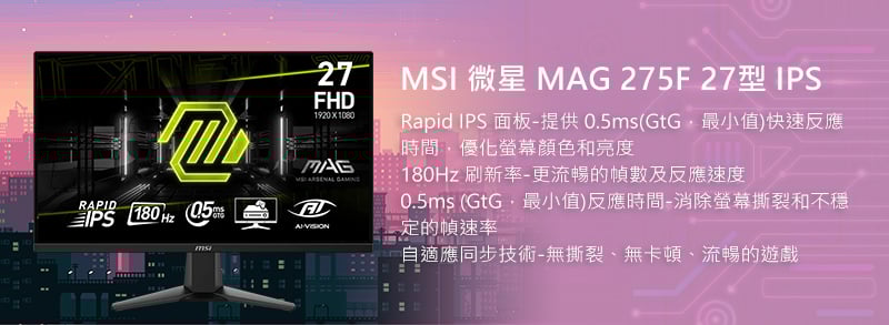 - 螢幕:MSI 微星 MAG 275F 27型 IPS