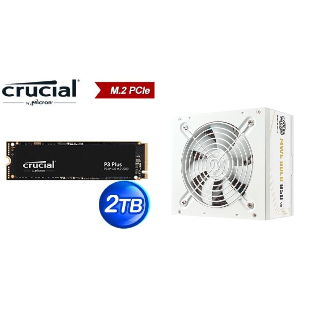 ☆期間限定★ 美光 Crucial P3 PLUS 2TB M.2 PCIe4.0 SSD+酷碼 MWE Gold 650 V3 白 金牌 直出 ATX3.1 電源供應器