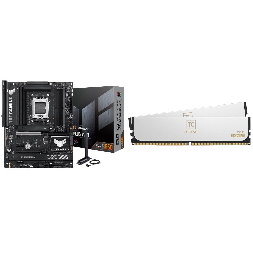 ☆期間限定★ 華碩 TUF GAMING B850-PLUS WIFI ATX主機板+TEAM 十銓T-CREATE EXPERT D5 6000 16G*2白 記憶體