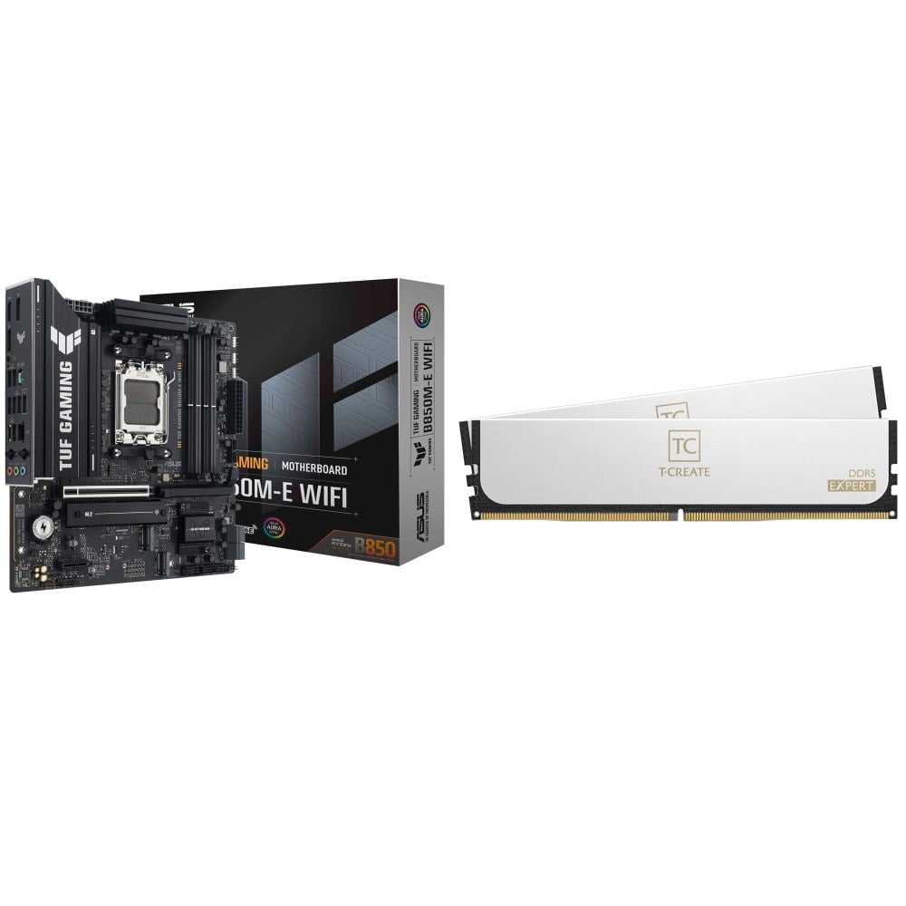 ☆期間限定★ 華碩 TUF GAMING B850M-E WIFI MATX 主機板+TEAM 十銓T-CREATE EXPERT D5 6000 16G*2白 記憶體