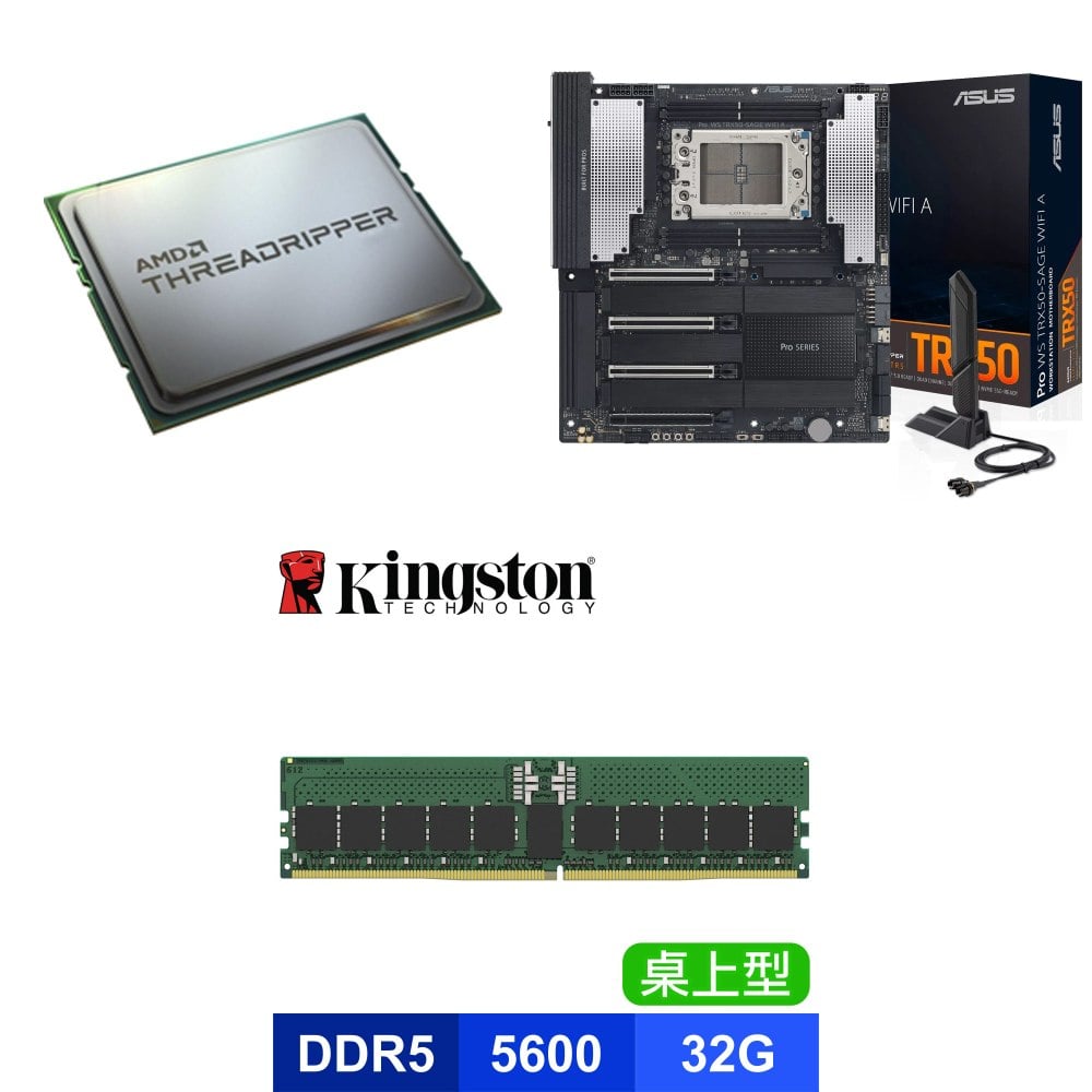 ☆期間限定★ AMD Ryzen TR 7960X+華碩 PRO WS TRX50-SAGE WIFI A CBE 主機板+金士頓D5 5600 32G ECC REG 2Rx8 伺服器記憶體(X2)
