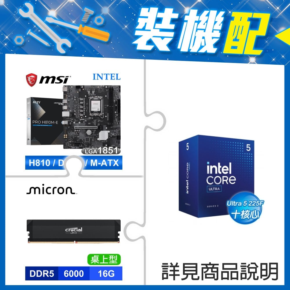 ☆裝機配★ Core U5 225+微星 PRO H810M-E D5 MATX主機板+美光 Crucial PRO DDR5-6000 16G 記憶體《白》