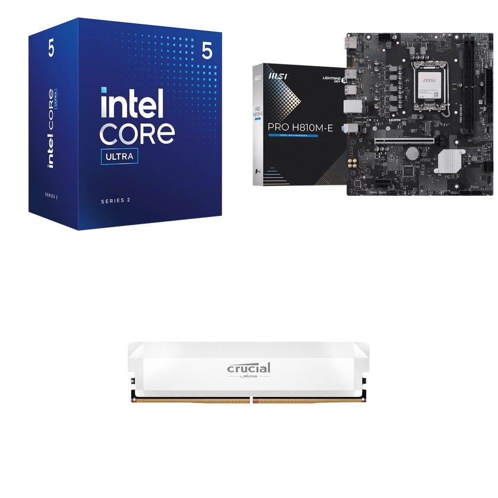 ☆裝機配★ Core U5 225F+微星 PRO H810M-E D5 MATX主機板+美光 Crucial PRO DDR5-6000 16G 記憶體《白》