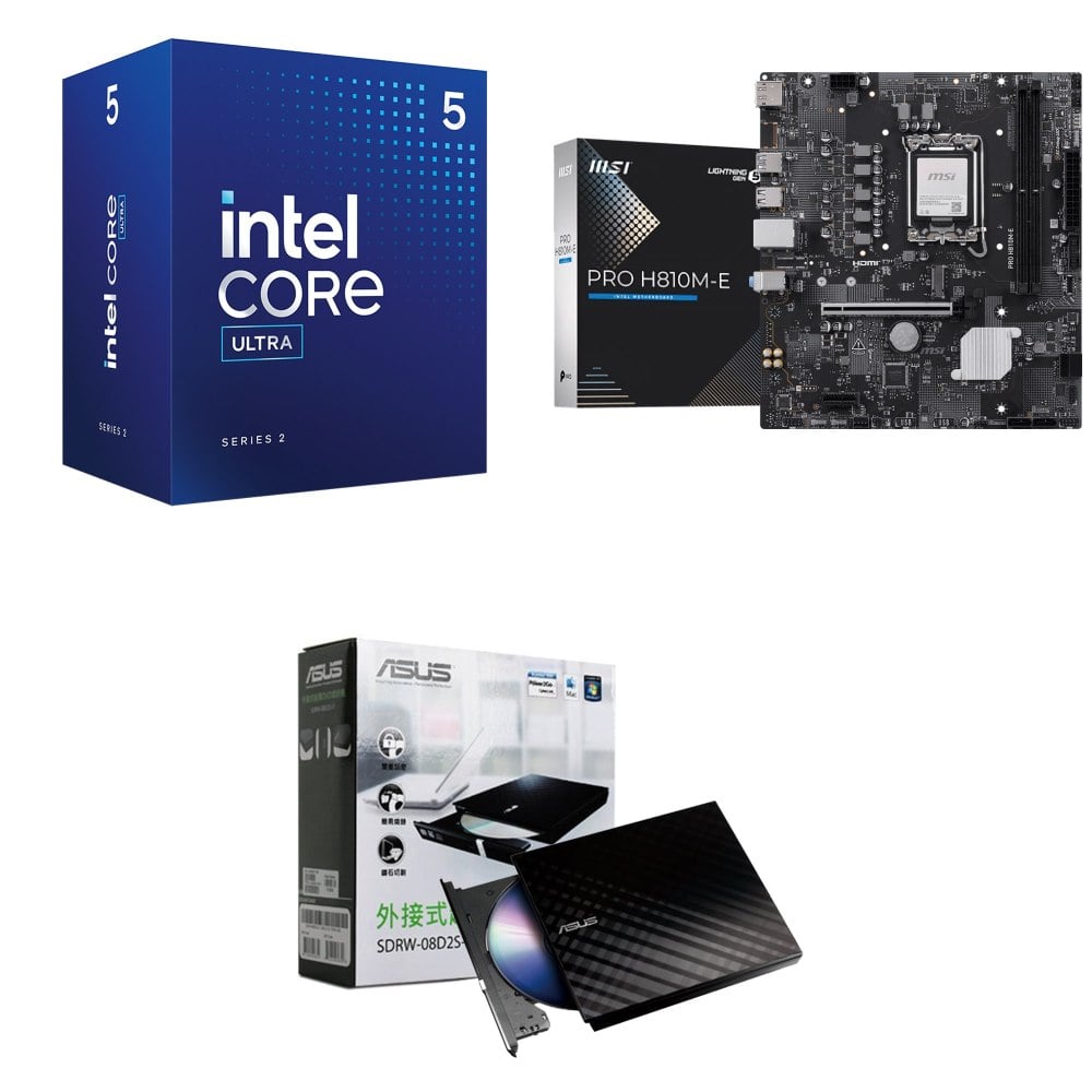 ☆裝機配★ Core U5 225+微星 PRO H810M-E D5 MATX主機板+華碩 SDRW-08D2S-U 外接式燒錄機《黑》