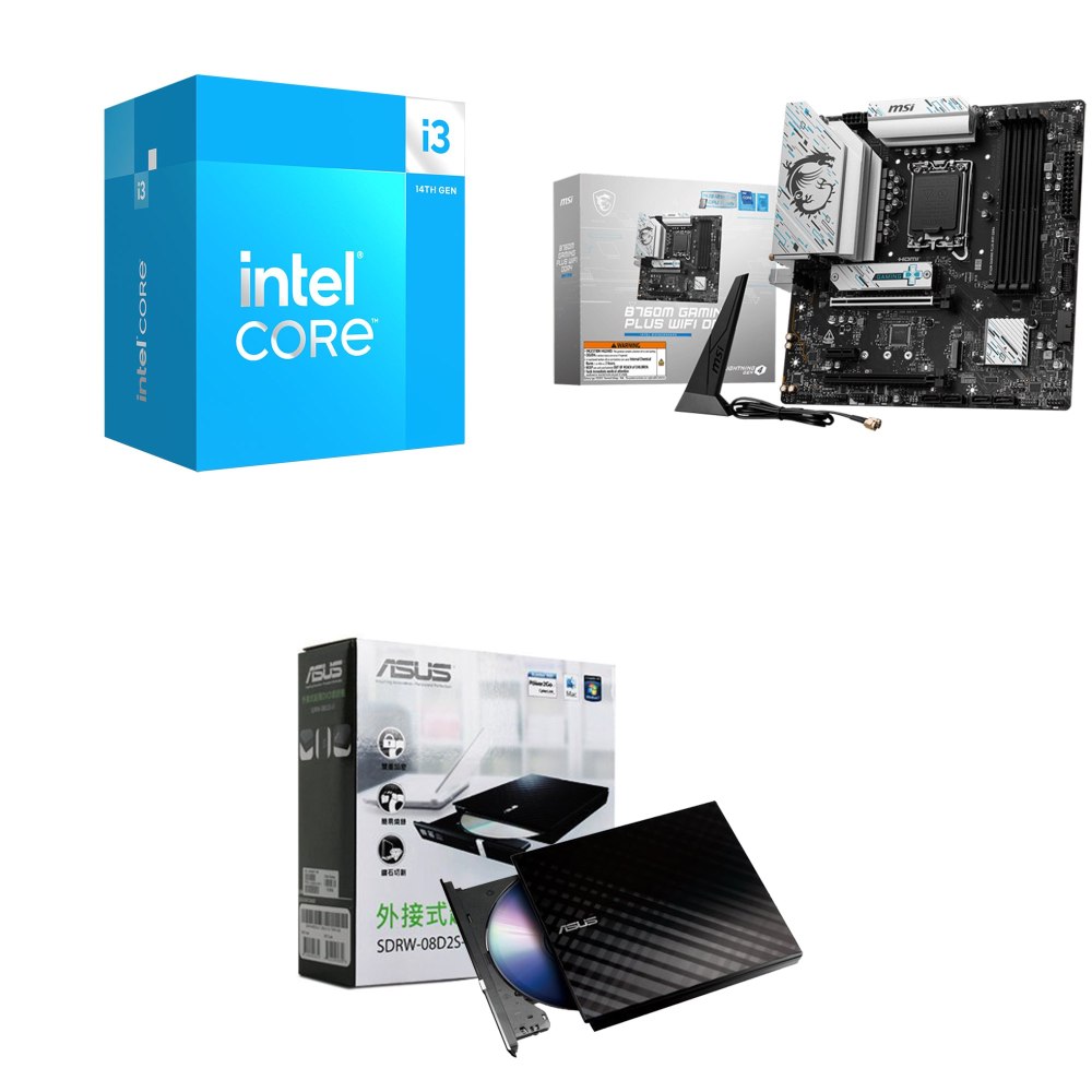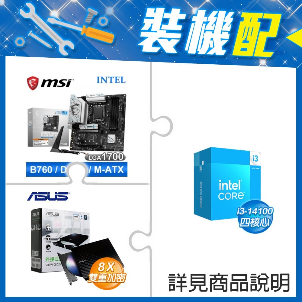 ☆裝機配★ i3-14100+微星 B760M GAMING PLUS WIFI D4 MATX主機板+華碩 SDRW-08D2S-U 外接式燒錄機《黑》