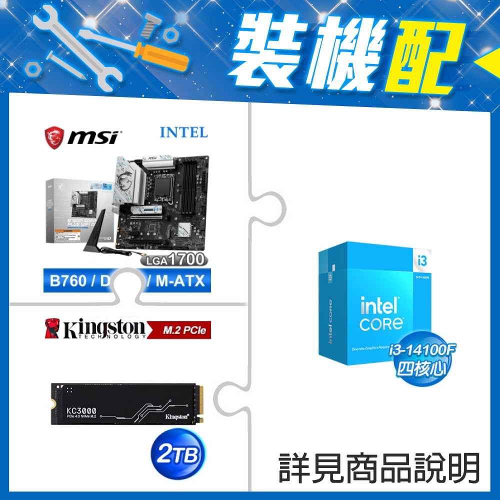 ☆裝機配★ i3-14100F+微星 B760M GAMING PLUS WIFI D4 MATX主機板+金士頓 KC3000 2TB PCIe 4.0 NVMe M.2 SSD