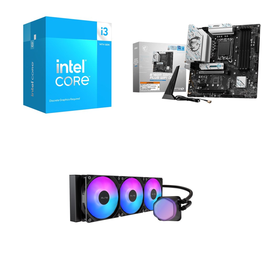 ☆裝機配★ i3-14100F+微星 B760M GAMING PLUS WIFI D4 MATX主機板+酷碼 EliteLiquid 360 ARGB 水冷散熱器