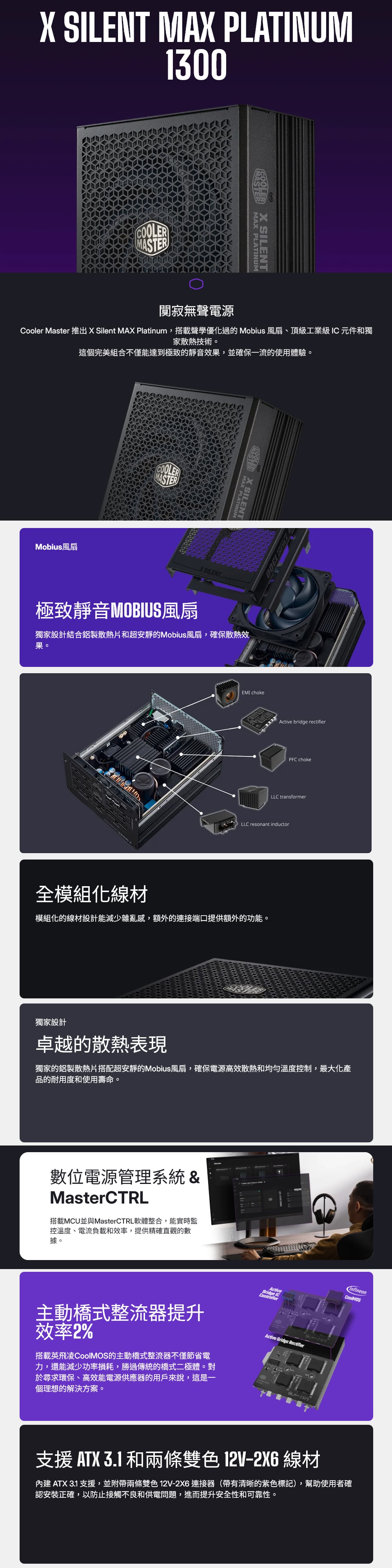 Cooler Master 酷碼 X Silent Max Platinum 1300W 白金 全模組 全日系 極靜音無聲風扇 ATX3.1 PCIe 5.1 電源供應器(15年保)