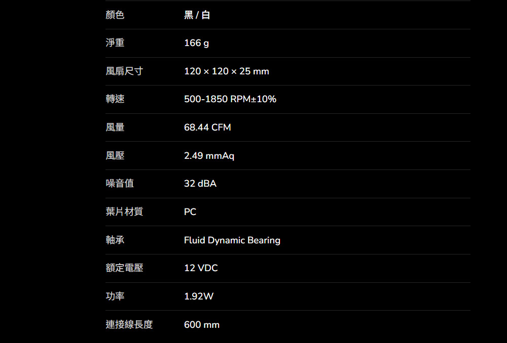- 風扇風量 68.44 CFM
