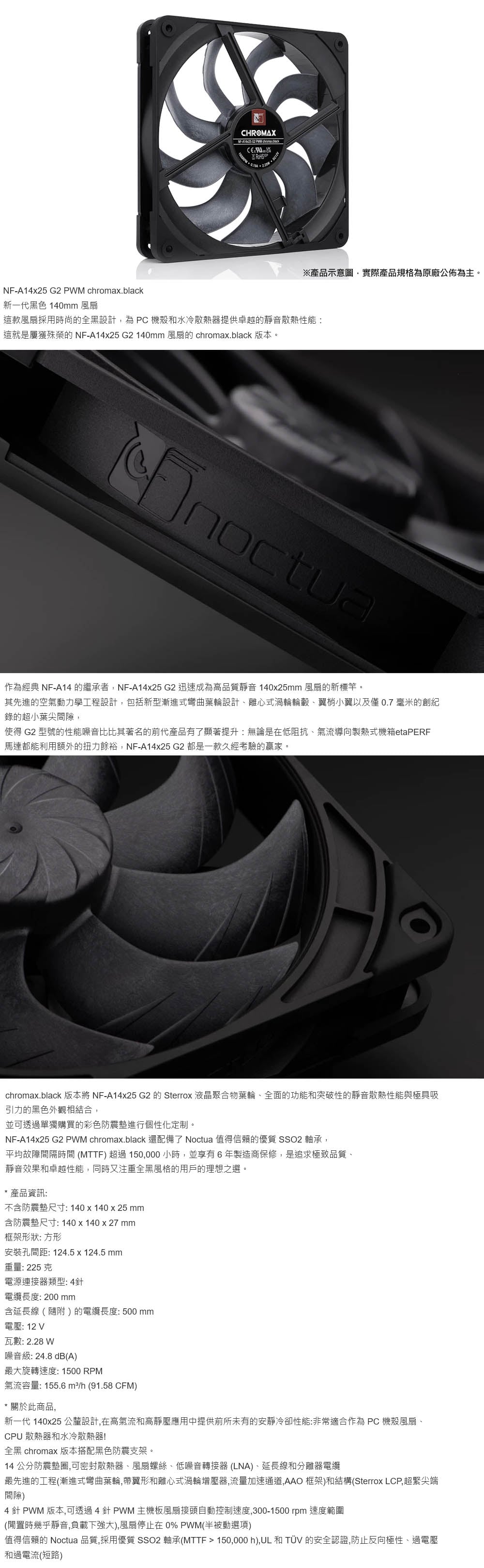 Noctua 貓頭鷹 NF-A14x25 G2 PWM CH.BK SSO2磁穩軸承 1500轉 AAO防震靜音扇