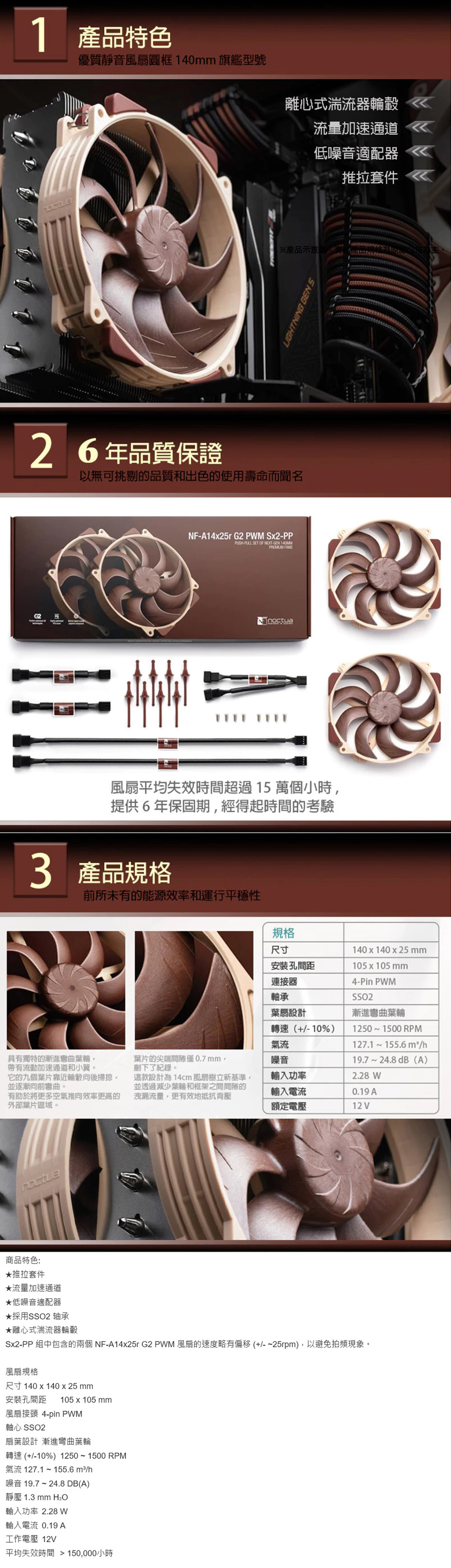 Noctua 貓頭鷹 NF-A14x25r G2 PWM Sx2-PP SSO2磁穩軸承 1500轉 AAO防震靜音雙風扇組