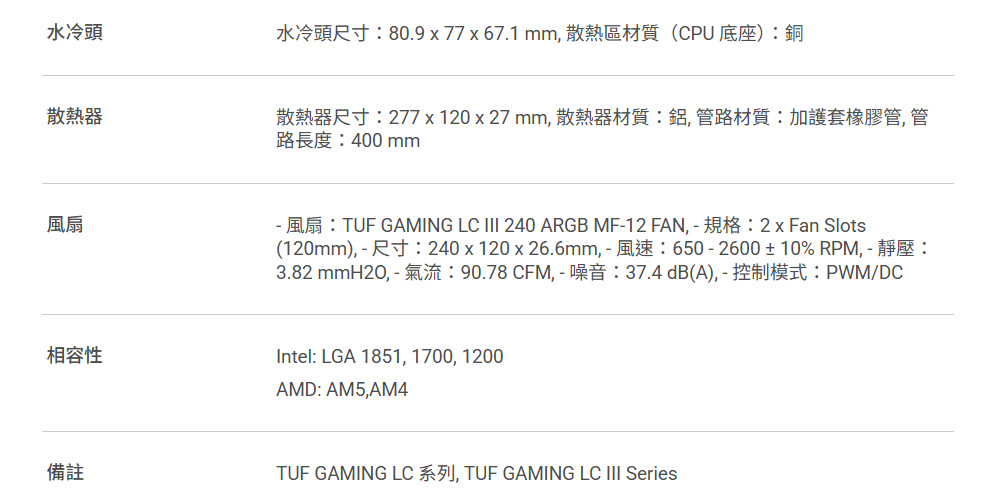 ASUS 華碩 TUF GAMING LC III 240 ARGB 水冷散熱器(6年非人損漏液保換新)