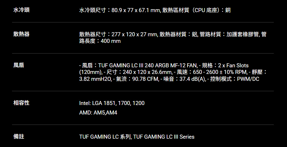 ASUS 華碩 TUF GAMING LC III 240 ARGB 水冷散熱器(6年非人損漏液保換新)