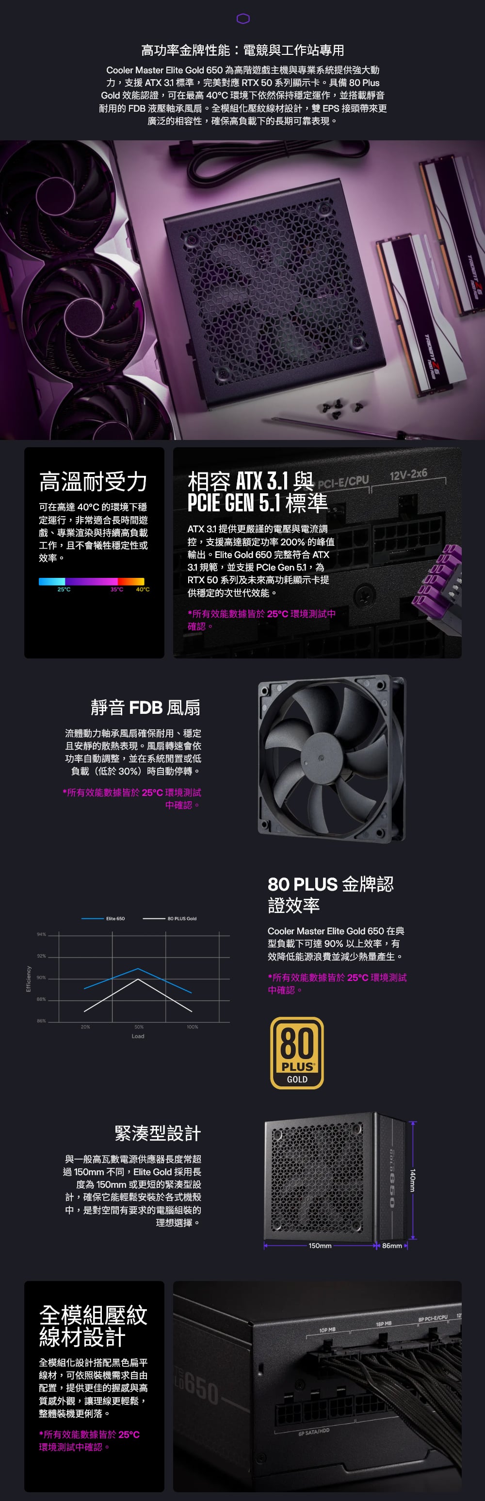 Cooler Master 酷碼 ELITE Gold 650W 金牌 全模組 ATX3.1 PCIe 5.1 電源供應器(10年保)