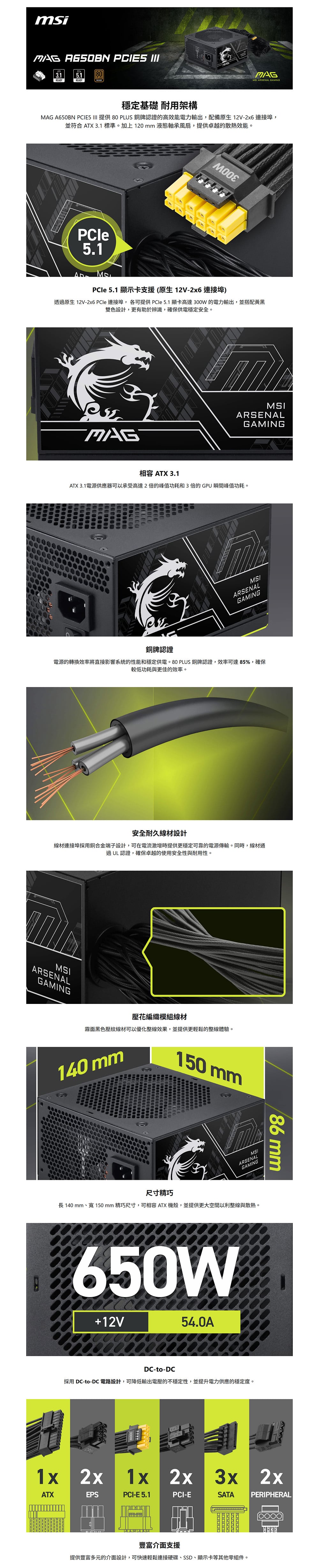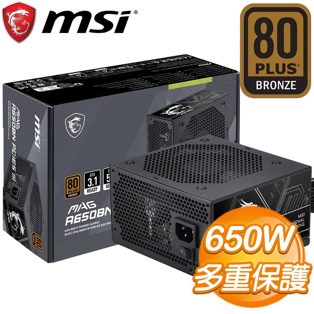 MSI 微星 MAG A650BN PCIE5 III 銅牌 直出 ATX3.1 PCIe 5.1 電源供應器(5年保)