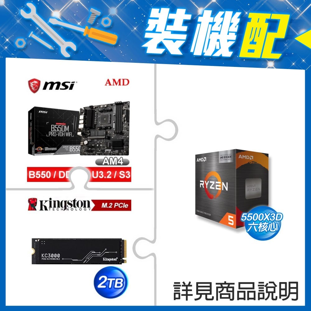 ☆裝機配★ AMD R5 5500X3D+微星 B550M PRO-VDH WIFI M-ATX主機板+金士頓 KC3000 2TB PCIe 4.0 NVMe M.2 SSD