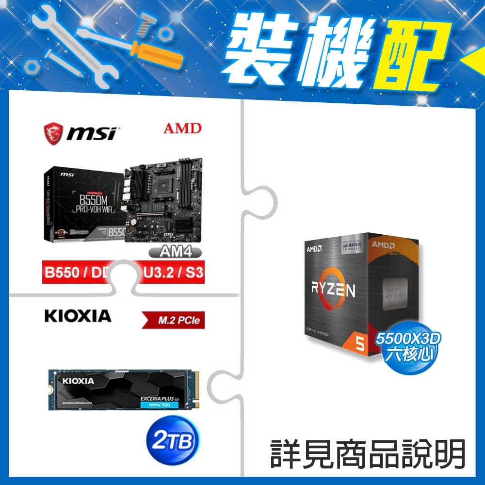 ☆裝機配★ AMD R5 5500X3D+微星 B550M PRO-VDH WIFI M-ATX主機板+鎧俠 EXCERIA PLUS G3 2TB PCIe Gen4x4 SSD