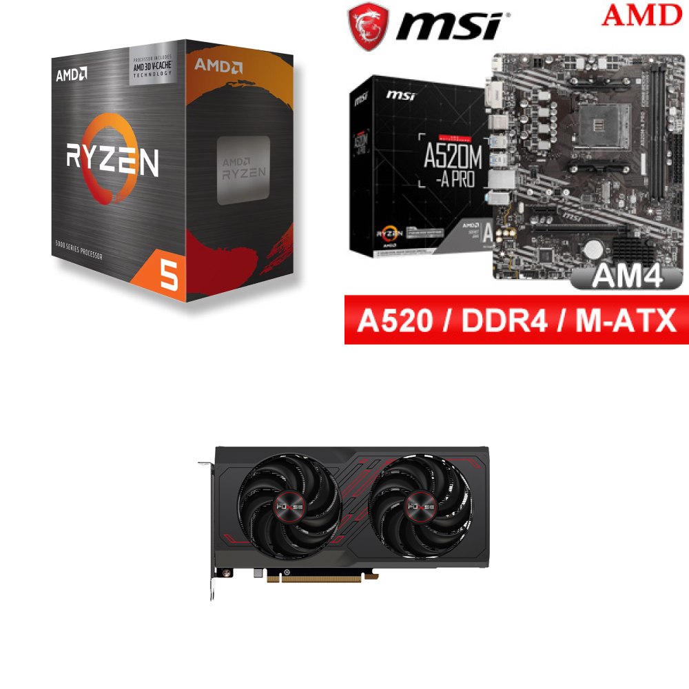 ☆裝機配★ AMD R5 5500X3D+微星 A520M-A PRO M-ATX主機板+藍寶石 PULSE 白金版 RX 7650 GRE GAMING 8GB 顯示卡