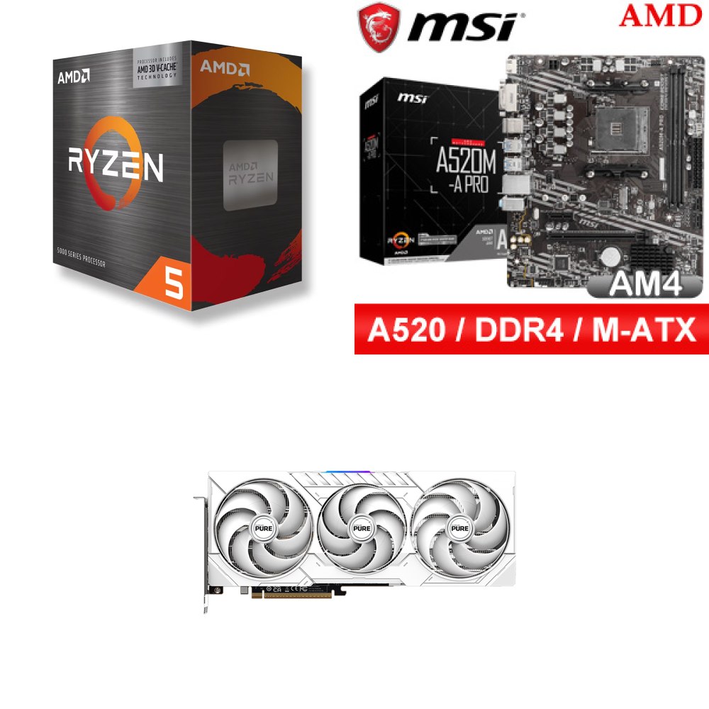 ☆裝機配★ AMD R5 5500X3D+微星 A520M-A PRO M-ATX主機板+藍寶石 PURE 極地 RX 9070 GRE GAMING OC 12GB 顯示卡