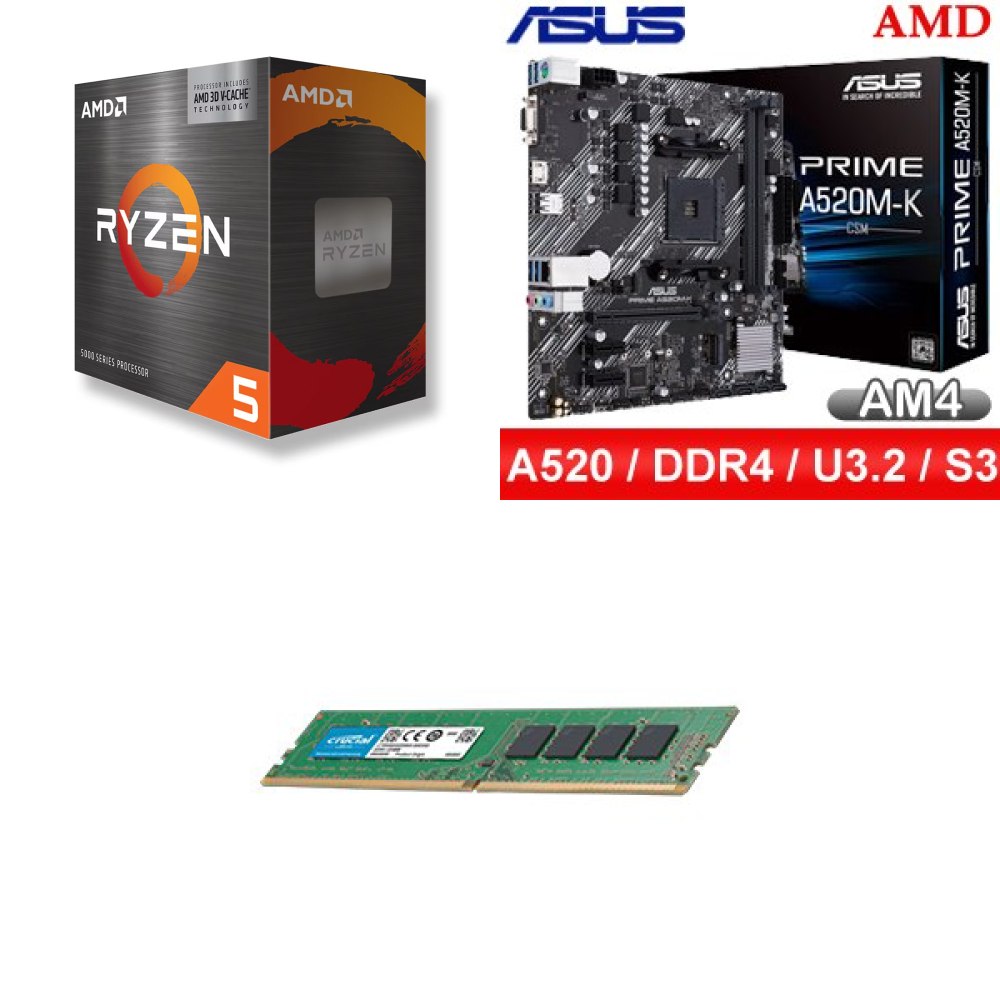 ☆裝機配★ AMD R5 5500X3D+華碩 PRIME A520M-K CSM M-ATX 主機板+美光 DDR4-3200 16G 記憶體
