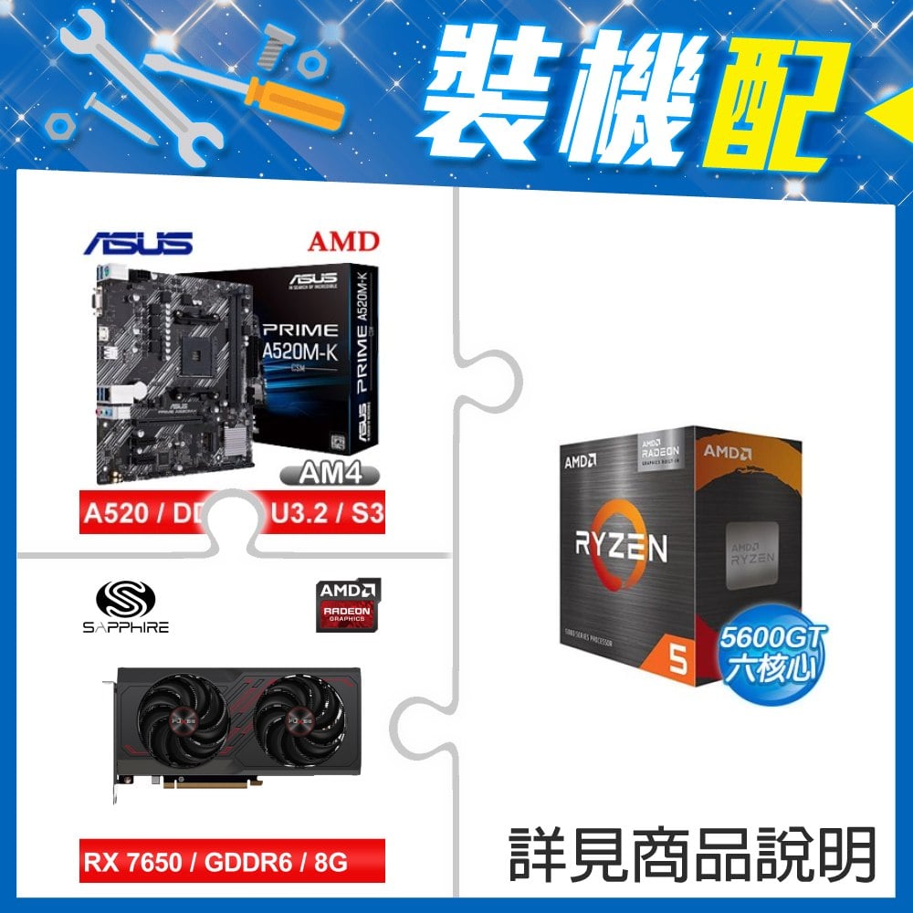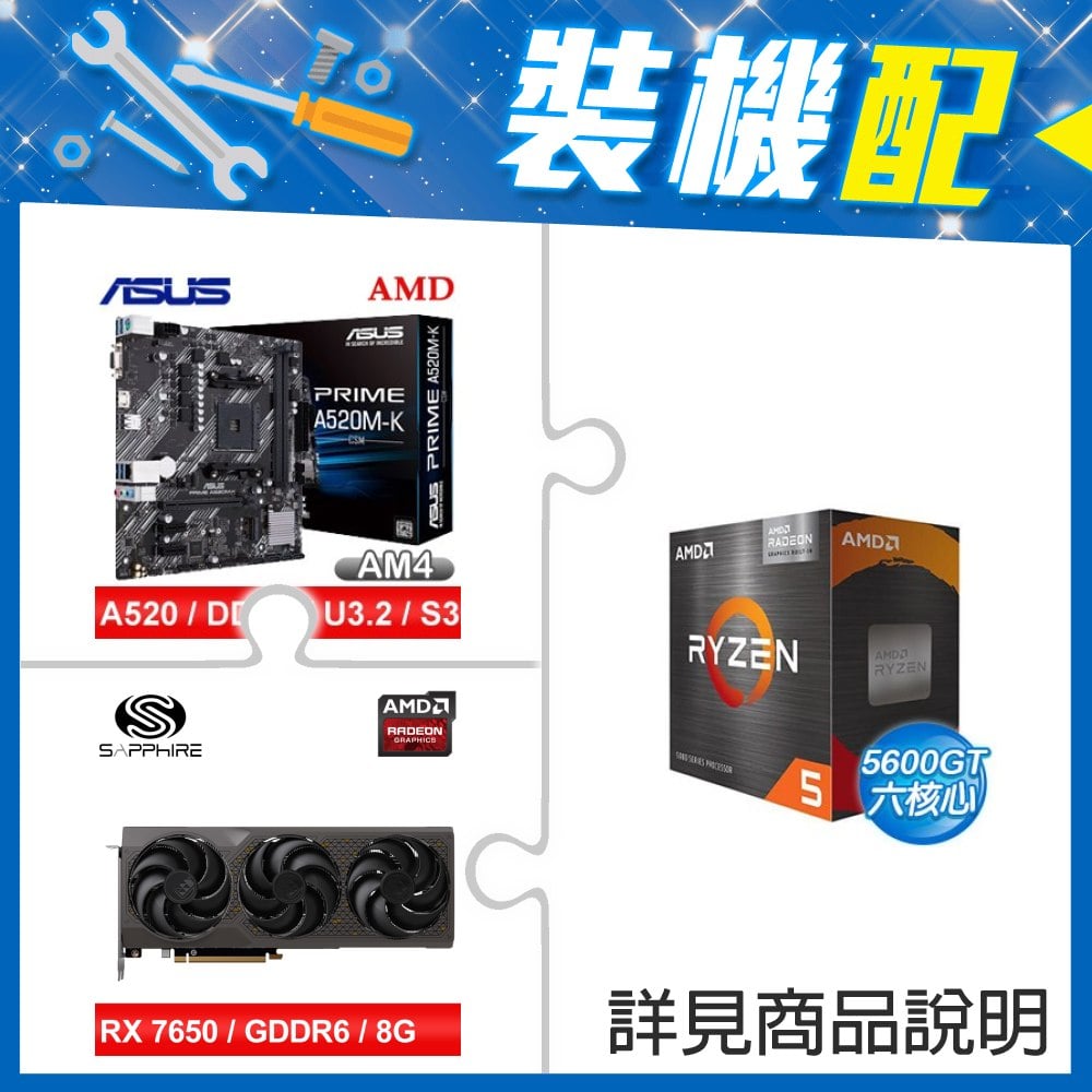 ☆裝機配★ AMD R5 5600GT+華碩 PRIME A520M-K CSM M-ATX 主機板+藍寶石 黑鑽版 RX 7650 GRE GAMING OC 8GB 顯示卡