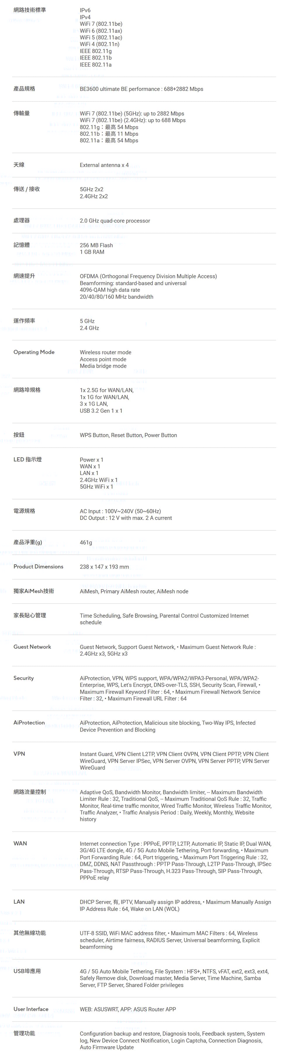 - 雙頻 WiFi 7:透過 MLO 和 4K-QAM,雙頻 WiFi 7 速度高達 3600 Mbps
