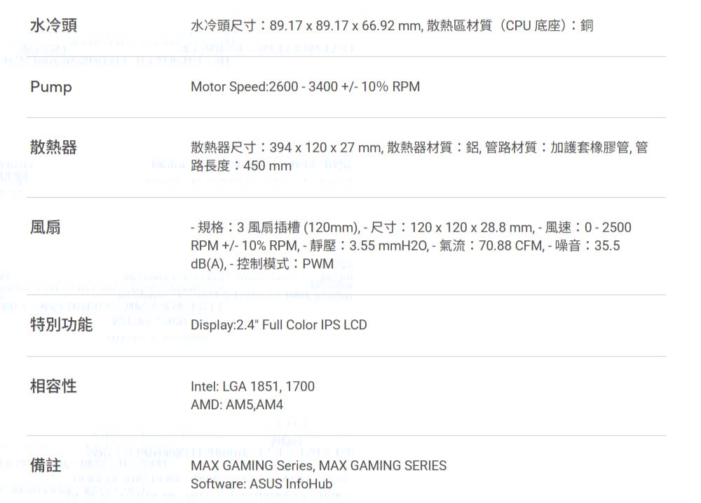 ASUS 華碩 MAX GAMING LC 360 ARGB LCD WHT 冷馭白 水冷散熱器(6年非人損漏液保換新)