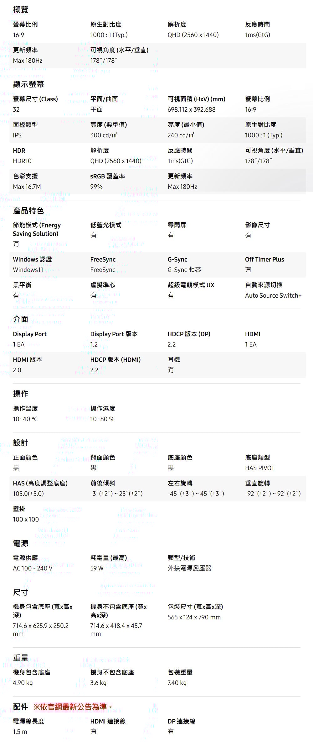 Samsung 三星 S32FG502EC 32型 1ms 180Hz IPS螢幕