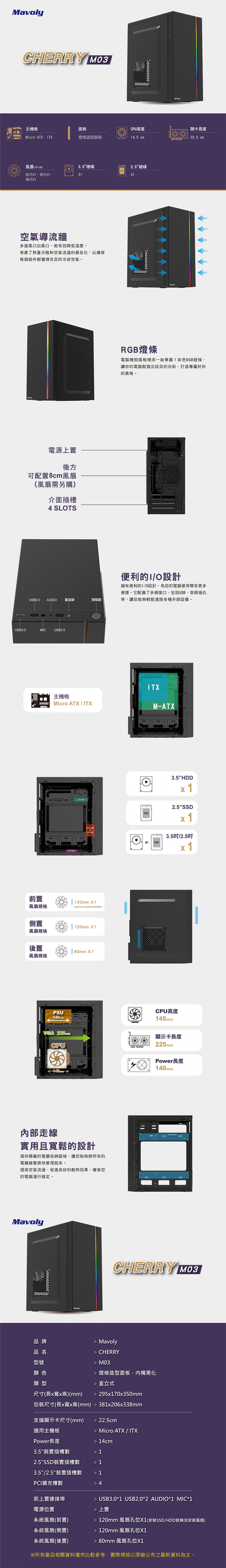Mavoly 松聖【CHERRY】M-ATX機殼《黑》(顯卡22.5/CPU高14.5)