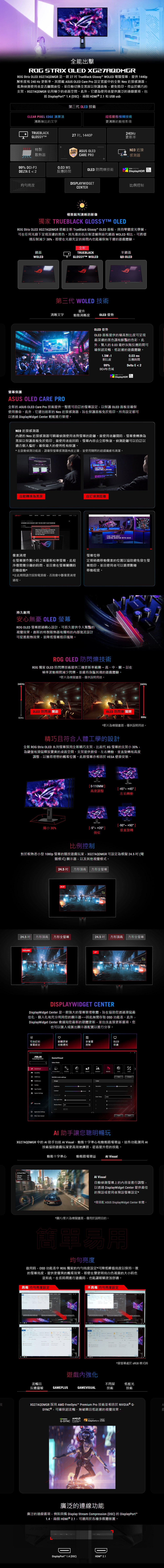 ASUS 華碩 XG27AQDMGR 27型 0.03ms 240Hz WOLED電競螢幕(DP/HDMI)