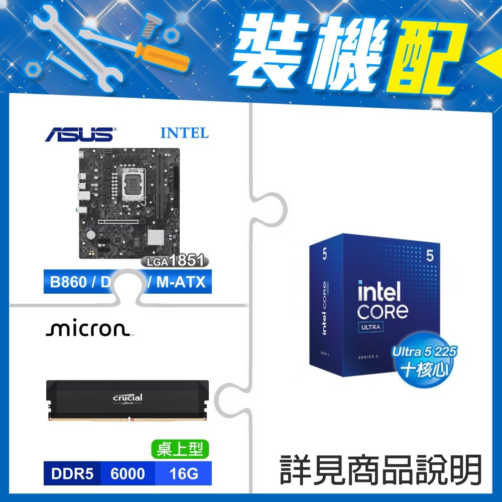 ☆裝機配★ Core U5 225F+華碩 B860M-E-CSM D5 MATX主機板+美光 Crucial PRO DDR5-6000 16G 記憶體