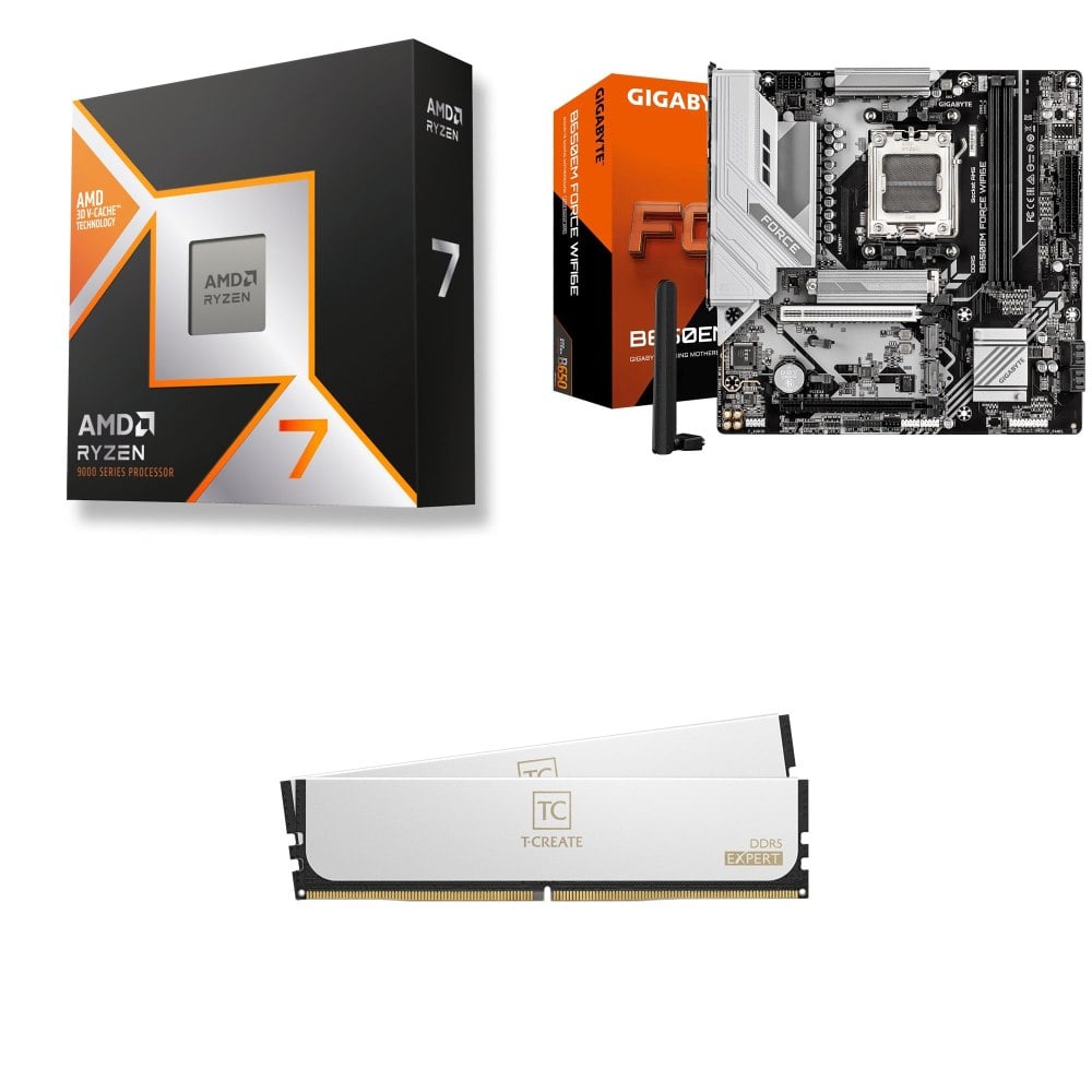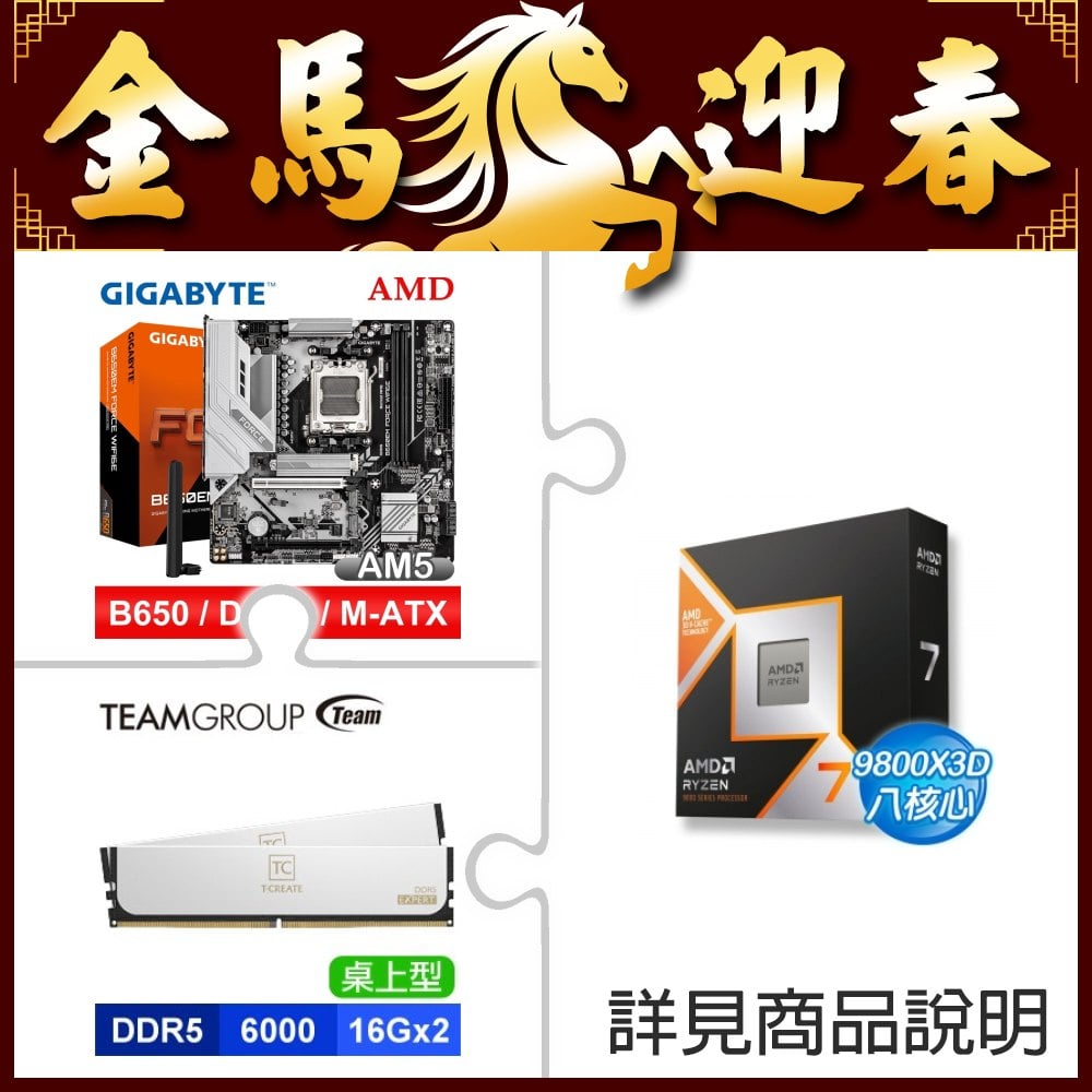 ☆期間限定★ AMD R7 9800X3D+技嘉 B650EM FORCE WIFI6E M-ATX主機板+TEAM 十銓T-CREATE EXPERT D5 6000 16G*2白 記憶體