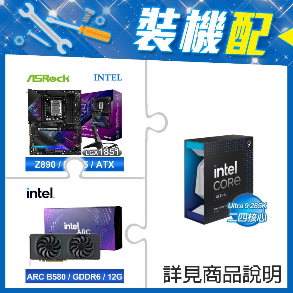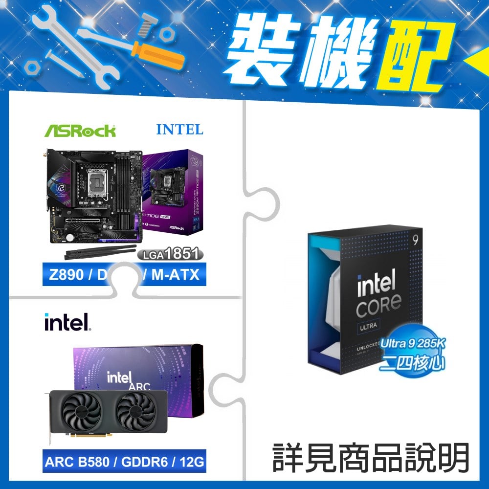 ☆裝機配★ Core U9 285K+華擎 Z890 Riptide WiFi D5 ATX主機板+Intel Arc B580 12G 20 Core 顯示卡