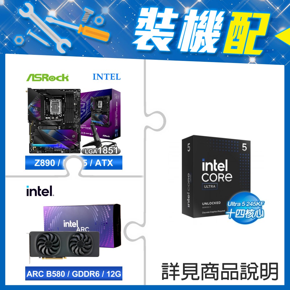 ☆裝機配★ Core U5 245KF+華擎 Z890 Riptide WiFi D5 ATX主機板+Intel Arc B580 12G 20 Core 顯示卡