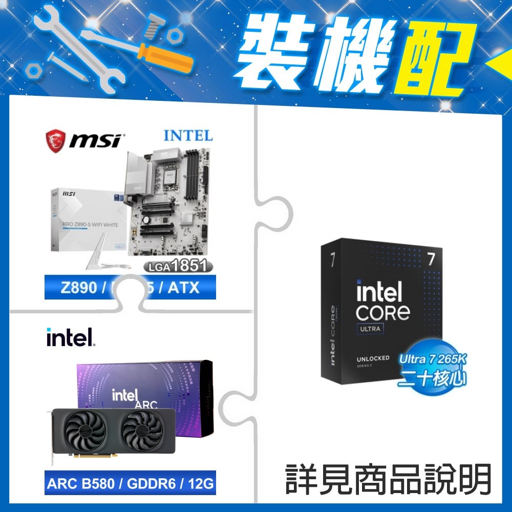 ☆裝機配★ Core U7 265KF+微星 PRO Z890-S WIFI WHITE D5 ATX主機板+Intel Arc B580 12G 20 Core 顯示卡