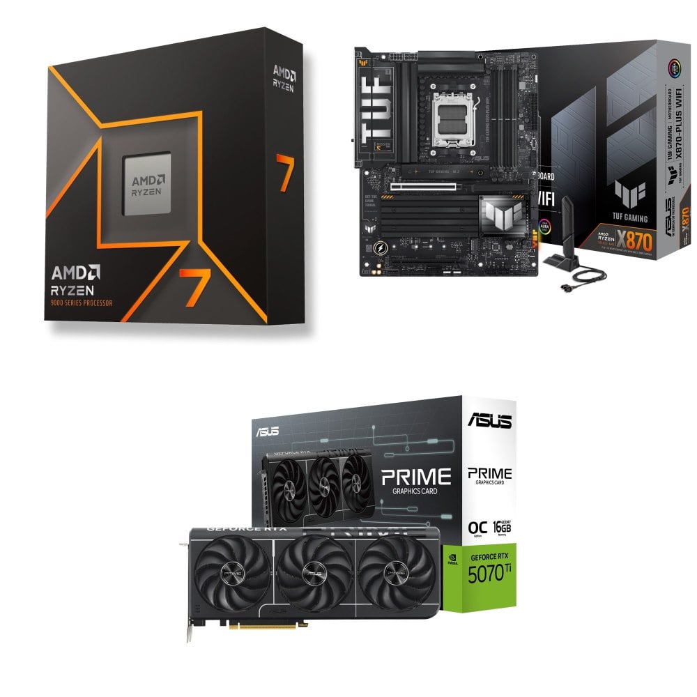 ☆期間限定★ AMD R7 9700X+華碩 TUF GAMING X870-PLUS WIFI ATX主機板+華碩 PRIME-RTX5070TI-O16G 顯示卡