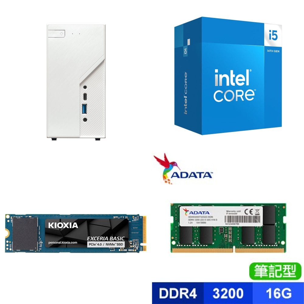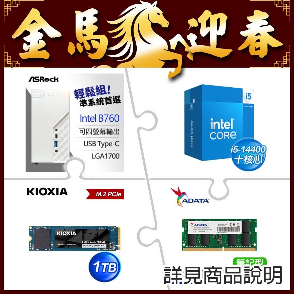 ☆期間限定★ 華擎 Deskmini B760 INTEL迷你準系統《白》+i5-14400+鎧俠 Exceria Basic 1TB Gen4 M.2 SSD+威剛 DDR4-3200 16G NB記憶體(2048*8) ★送Intel AX200 Wi-Fi 6 (Gig+) M.2無線網卡+華擎 DeskMini VESA 後背安裝支架