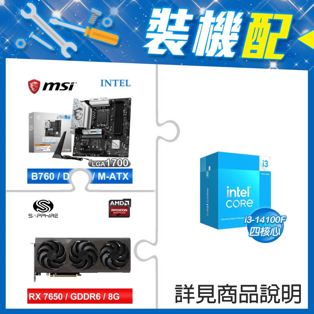 ☆裝機配★ i3-14100F+微星 B760M GAMING PLUS WIFI D4 MATX主機板+藍寶石 黑鑽版 RX 7650 GRE GAMING OC 8GB 顯示卡