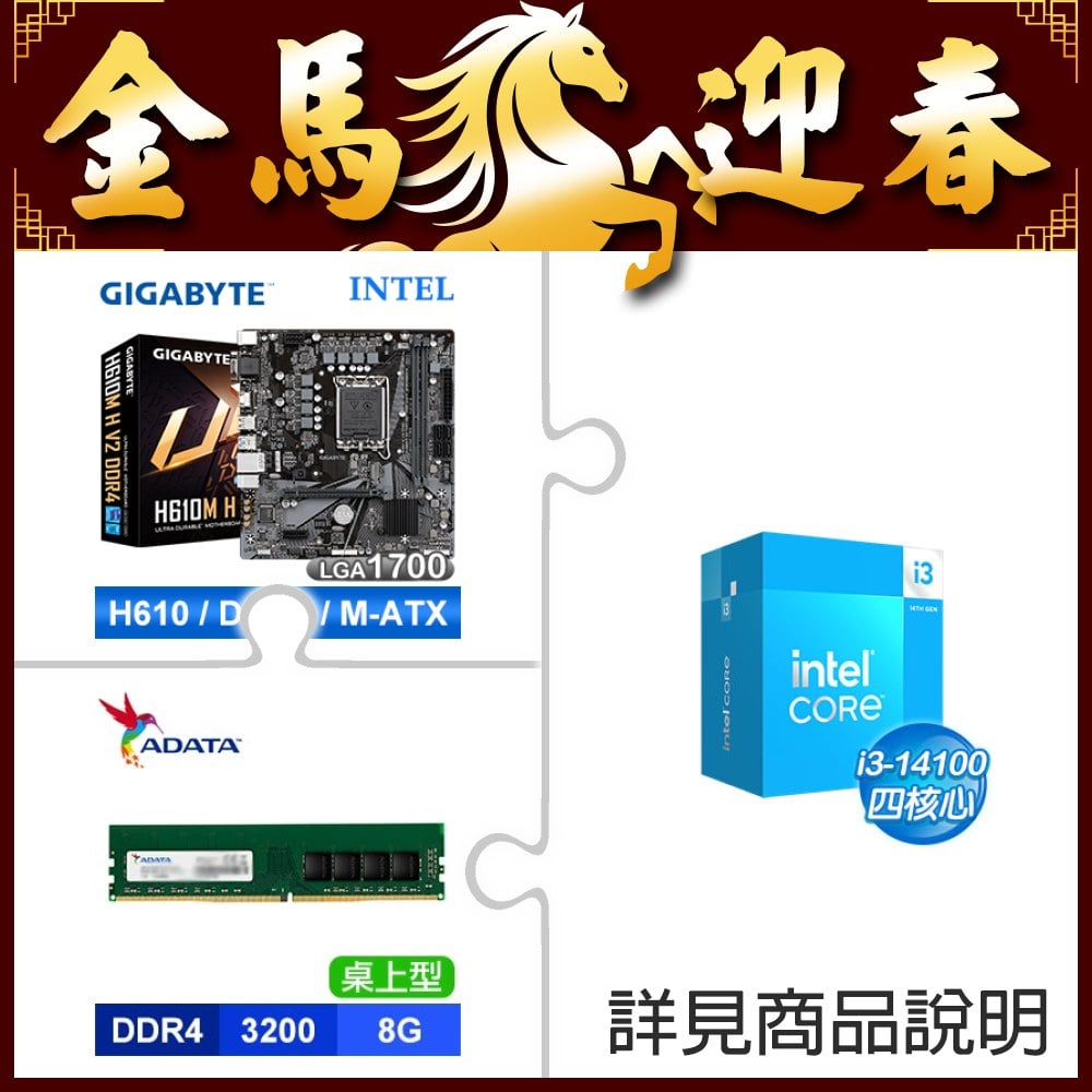 ☆期間限定★ i3-14100+技嘉 H610M H V2 D4 M-ATX主機板+威剛 DDR4-3200 8G 記憶體