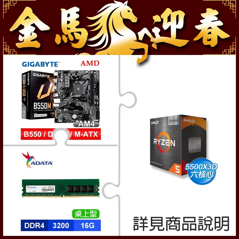 ☆期間限定★ AMD Ryzen 5 5500X3D+技嘉 B550M H ARGB MATX 主機板+威剛 DDR4-3200 16G 記憶體