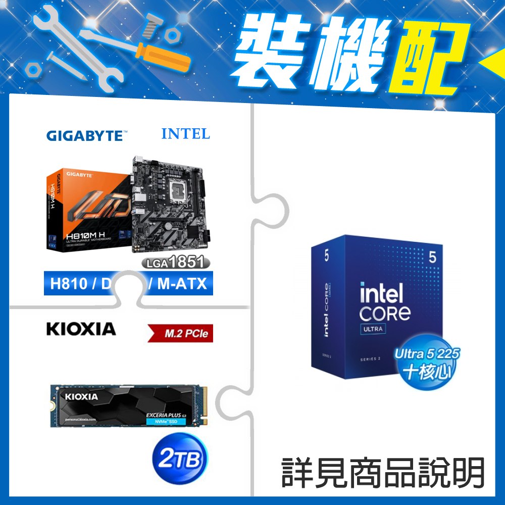 ☆裝機配★ Core U5 225+技嘉 H810M-H D5 MATX主機板+鎧俠 EXCERIA PLUS G3 2TB PCIe Gen4x4 SSD