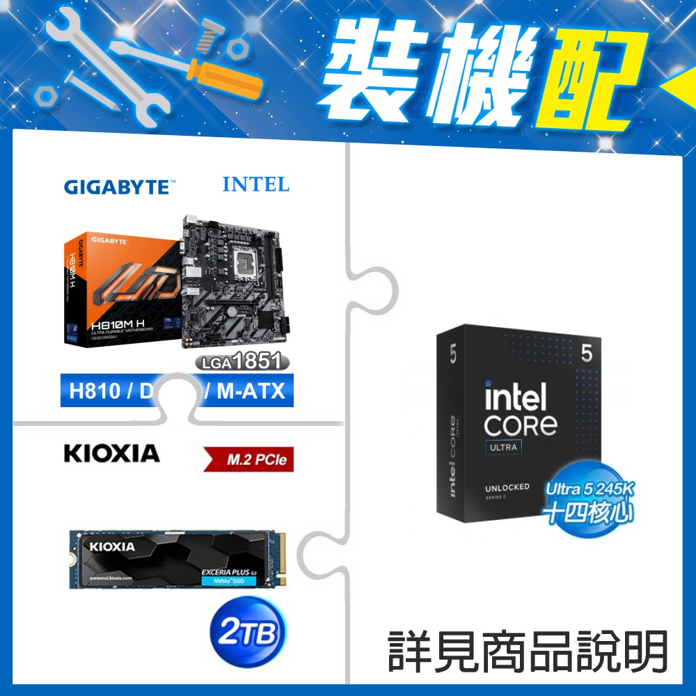 ☆裝機配★ Core U5 245K+技嘉 H810M-H D5 MATX主機板+鎧俠 EXCERIA PLUS G3 1TB PCIe Gen4x4 SSD